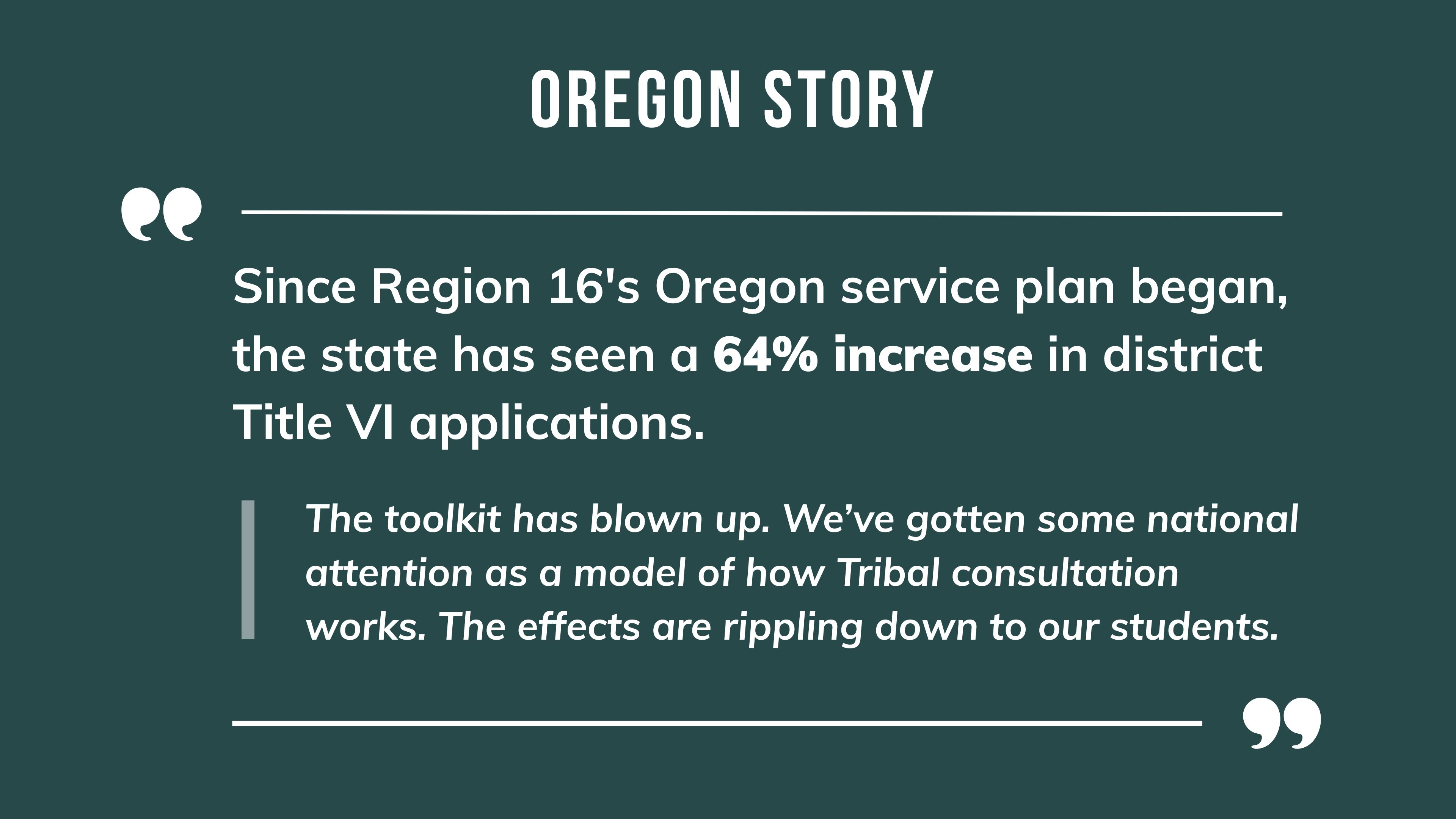 Region 16 Comprehensive Center was one of 19 Regional Comprehensive Centers funded by the U.S. Department of Education in 2019 to support state education agencies (SEAs) in Alaska, Oregon, and Washington. As a consortium of 29 educational service districts across these states, the Center partnered with communities across the region to build capacity in SEA-identified areas like literacy, Native education, and family and community engagement.
